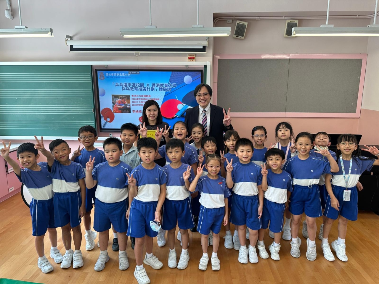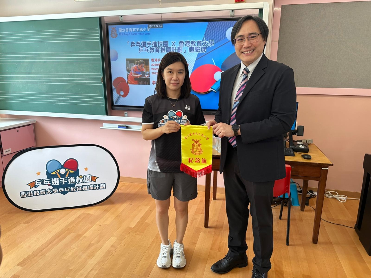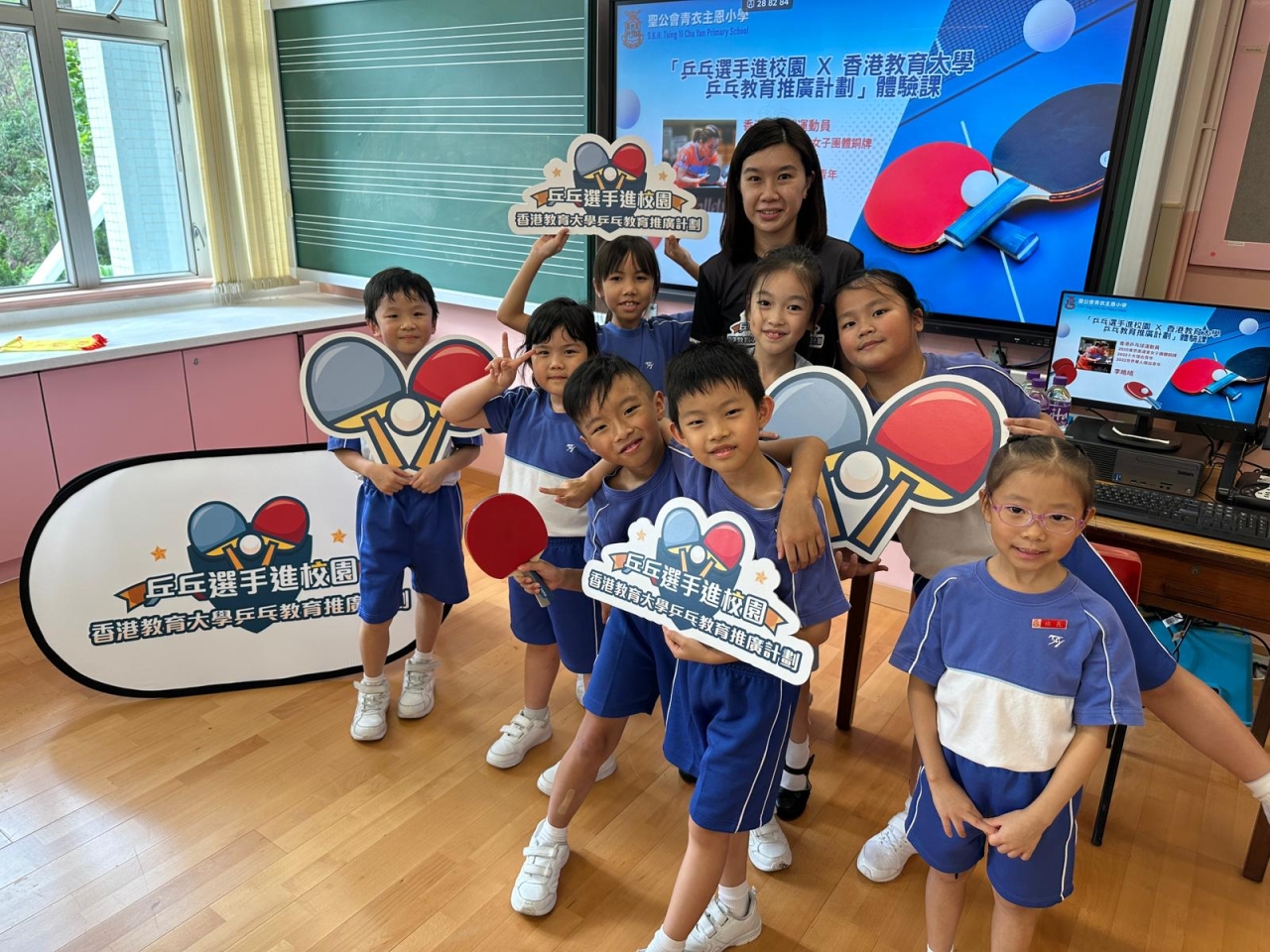 為培養小學生對乒乓球的興趣,發掘其運動天賦,並促進其全面發展,本校於十月八日為學生安排了「乒乓選手進校園x香港教育大學乒乓教育推廣計劃」活動,由奧運乒乓球獎牌得主李皓晴帶領專業教練及香港教育大學學生團隊,為學生介紹乒乓球的歷史起源和發展演變,及作為中國「國球」的文化意義,提升學生對國家歷史與文化的認識,增強文化自信與認同感。