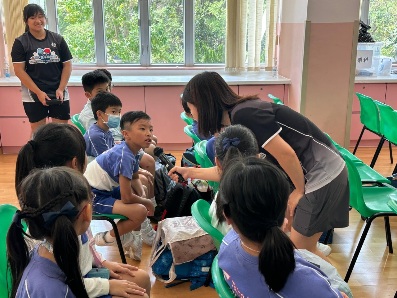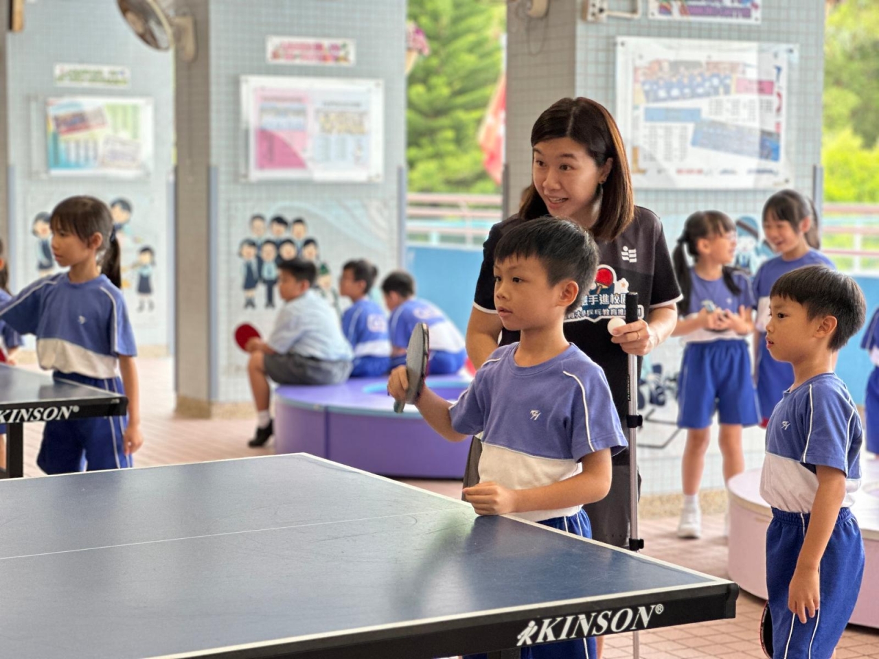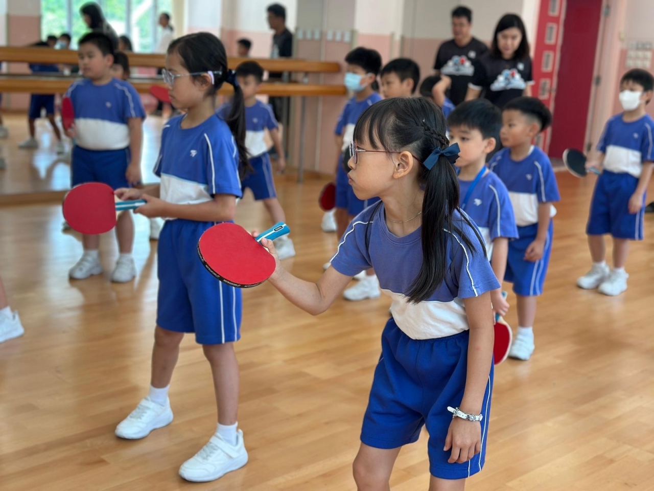 當天的體驗課中,李皓晴分享了自小接觸乒乓球運動的趣事。她與團隊亦親授本校30名一至三年級學生乒乓球基礎技巧,包括握拍姿勢、正手及反手接球技巧。教練團隊專業認真,學生們反應熱烈,表現主動投入,認真地學習乒乓球技巧,感受打乒乓球的樂趣。