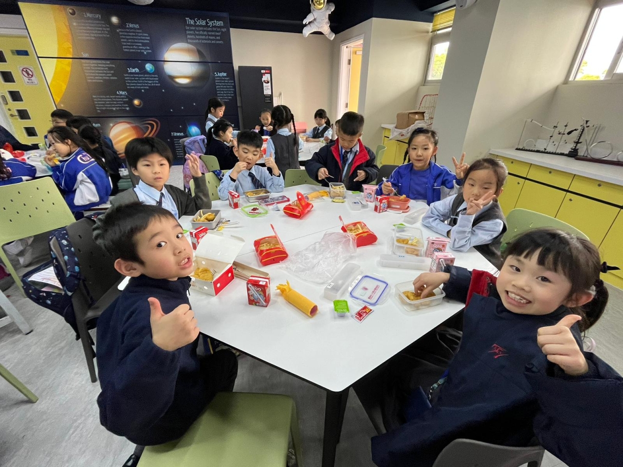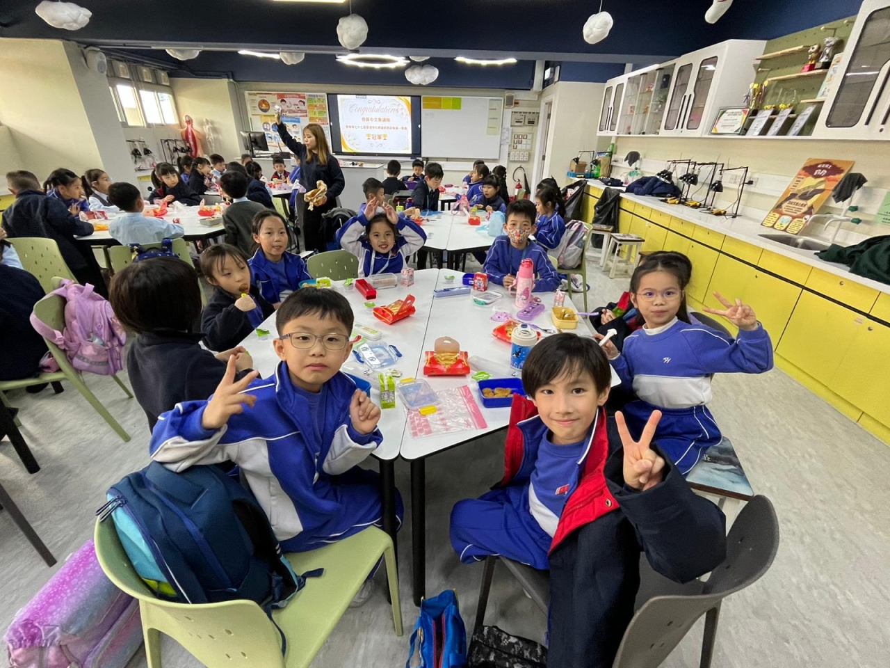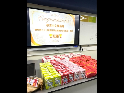 為恭賀本學年的中文集誦隊(小二學生)榮獲第七十七屆學校朗誦節詩詞集誦比賽(粵語)冠軍,陳校長參與中文集誦隊慶功宴,祝賀一眾中文集誦隊的師生及合照,給學生送上衷心的鼓勵。在慶功宴中,學生享用美食之餘,亦不忘老師一直以來的栽培與指導,整個過程恩典滿滿!
