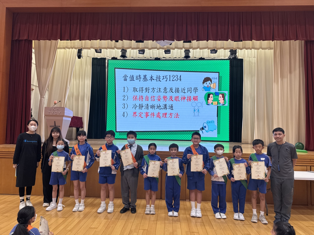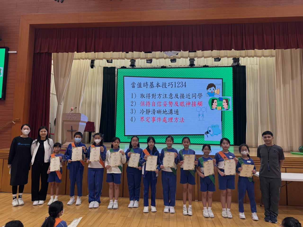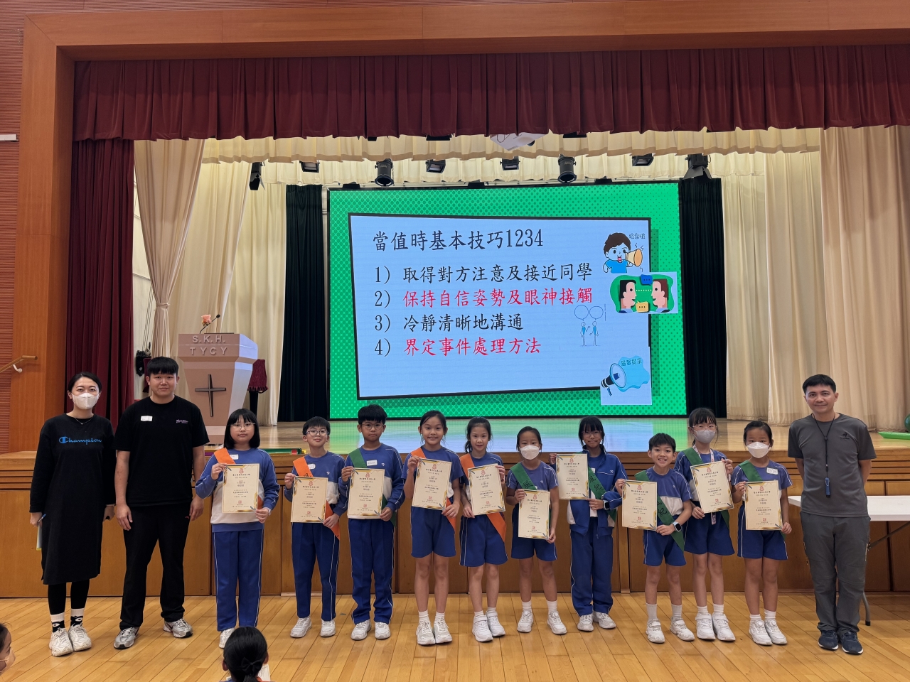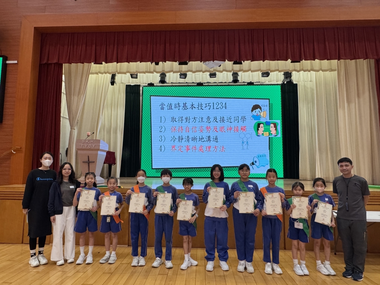 所有風紀生均積極參與各項活動,組員之間亦能齊心合力完成各項歷奇任務。合共103名四至六年級風紀生完成訓練並獲頒發證書,當中20名風紀生更獲頒發最佳表現獎,以表揚他們在訓練期間主動認真、正面積極、具領導才能的表現。期待風紀生能把本次訓練所學靈活應用到日常的當值服務中,繼續成為樂於服務、訓練有素的風紀。