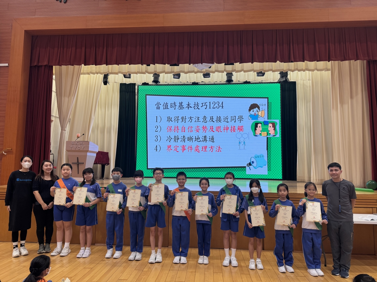 完成訓練之風紀生名單 | 4A 鄭蘊怡 4A 何韋棕 4A 黃楷軼 4E 錢樂軒 4E 李欣潼 4E 余芊瞳 6A 余楚妍 6A 陳芷芊 | 4A 黎心悠 4A 林嘉蕙 4A 林旨信 4A 梁信芯 4C 曾海晴 5A 朱祉林 5A 黃枳維 6D 簡廷彰 | 4C 鄭菀善 4C 石晉謙 4D 陳奕霖 4E 古詩詠 4E 梁樂熹 5A 許霆軒 5A 張希敏 5B 莊鈞洛 | 4B 黃悦澄 4C 黃靖悠 5A 陳奕妃 5A 蔡沛炘 5A 林紫瑜 5A 伍藹瑩 6A 陳曉瑩 6A 陳柏穎 |