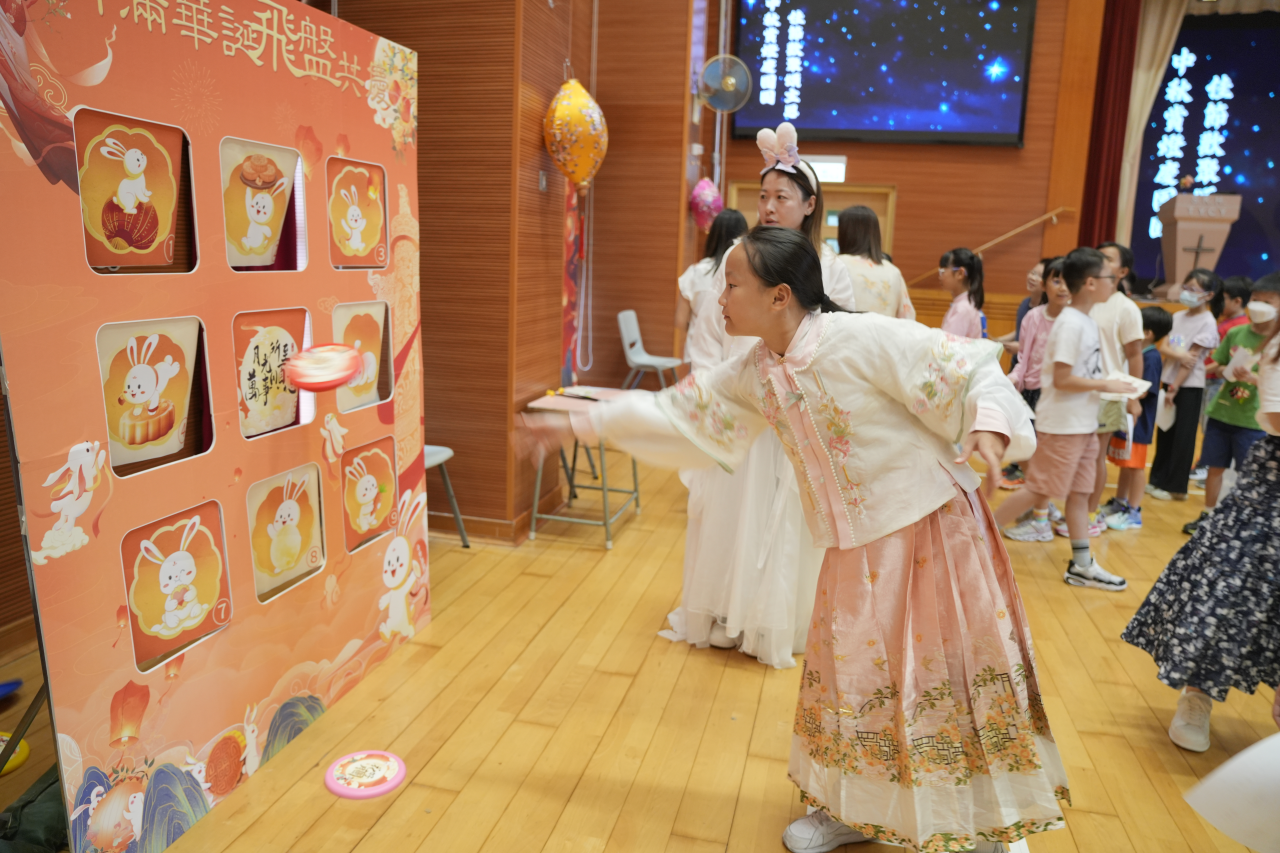 因此,本校在10月6日(農曆八月十五)舉行了「中秋賞燈慶團圓」中華文化節慶活動,包括:花燈設計比賽競選、猜燈謎、中秋攤位遊戲、同享中秋應節食品、輕黏土月餅製作和認識國家航天科技與探月工程,讓師生都能在校園內聚首一堂、共聚團圓。
