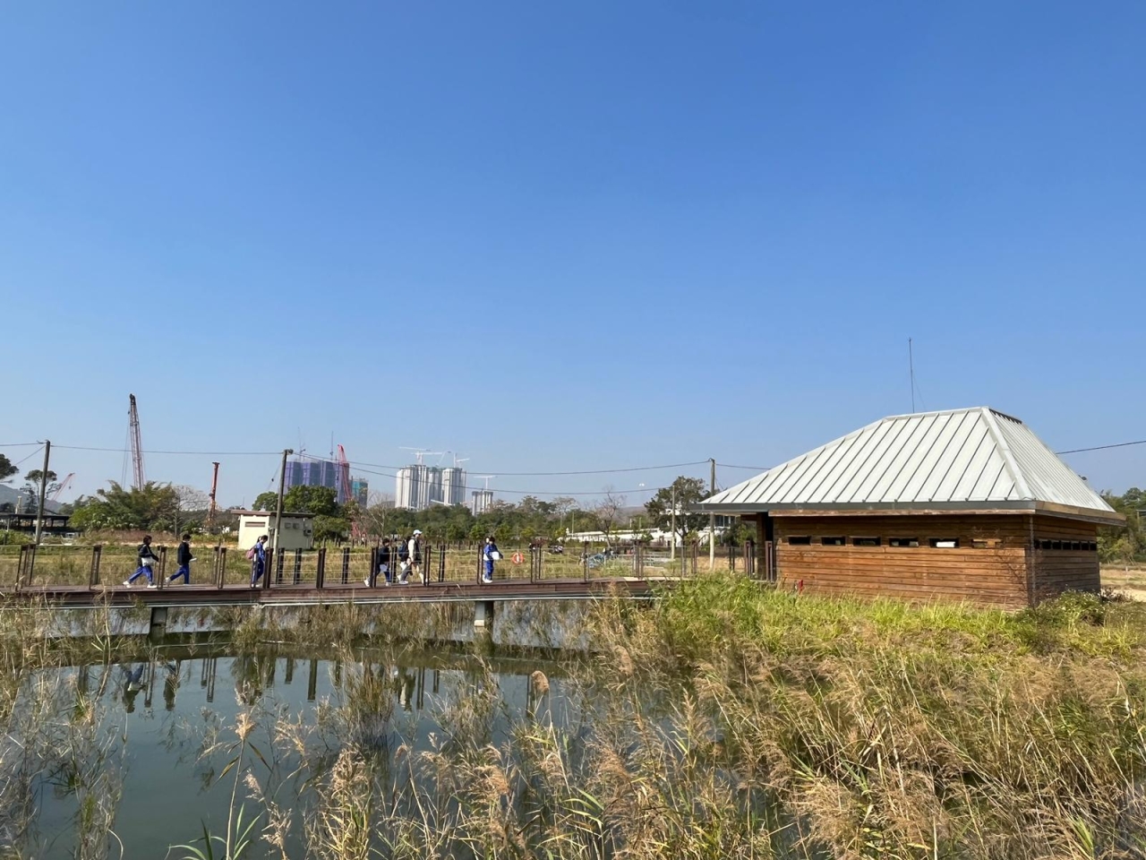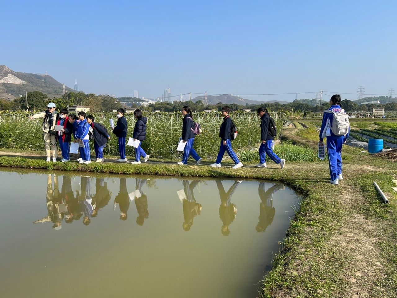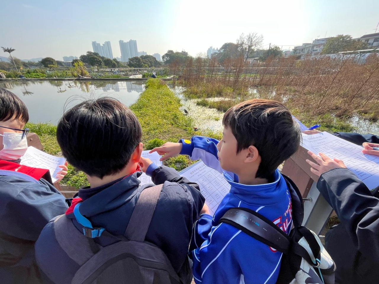 透過生態協會導賞員的介紹,學生認識到塱原為香港最重要的淡水濕地之一,面積達 37 公頃,為水鳥、兩棲爬行動物等提供了優質的棲息環境。公園分為訪客區、農業區及生態區,擁有豐富的濕地生態系統。這裡不受海水影響,孕育了與沿海濕地截然不同的物種,是鳥類休息、覓食及繁殖的理想場所。